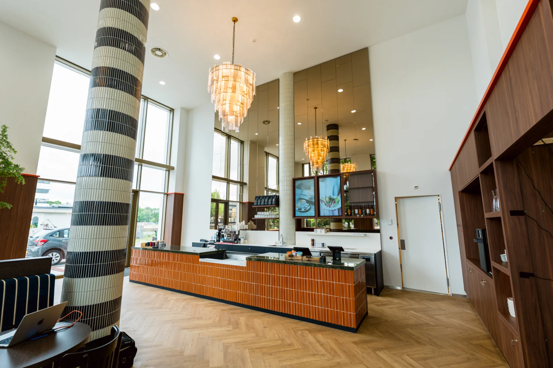 - Volledige afbouw van begane grond en eerste verdiepingen (horeca/keuken). - Sloop- en stutwerk, betonboringen en ruw timmerwerk voor maatwerkconstructies. - Levering en montage van keukenlineaire opstellingen, barfront en pantry’s. - Plaatsing van systeemwanden, glazen scheidingen en geluidsschotten. - Vloerafwerkingen: PVC visgraat, tegels en tapijt; tegelwerk in keuken.